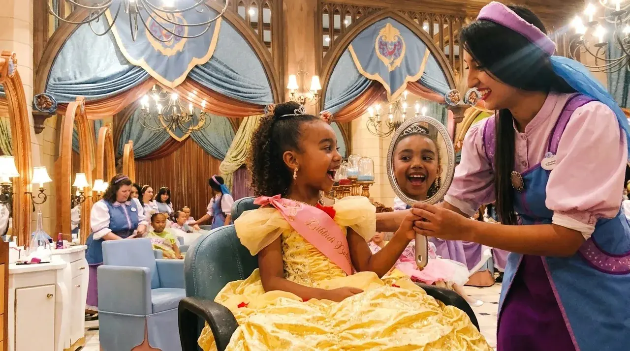 For budget-conscious families: bring your own costume. The styling-only packages ($59.99-$74.95) include hair, accessories, and makeup without a costume. If your child already has a favorite princess dress from home, bringing it to wear during the boutique appointment gets them the full transformed look at the lowest package price. The Apprentice will work with whatever your child is wearing.